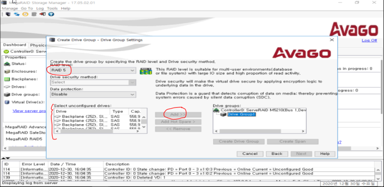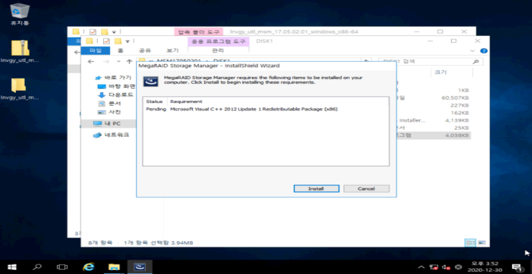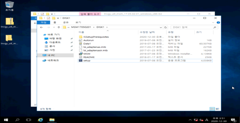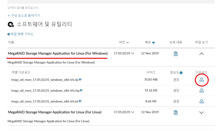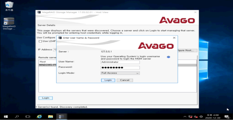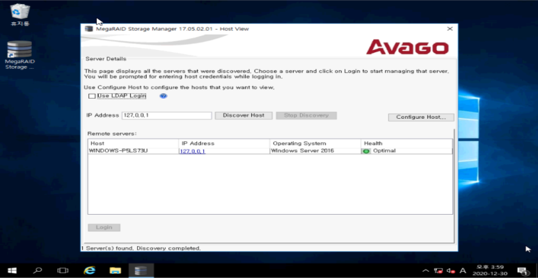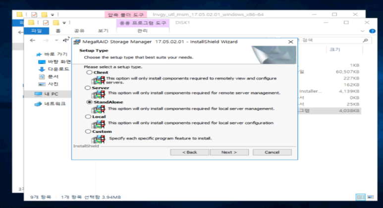 Windows Server 환경에서는 MegaRAID Storage Manager(MSM) 설치를 통해 RAID 구성 및 관리를 수행한다.